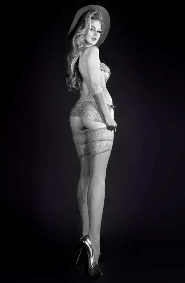 From the Gold Elixir Collection these gorgeous hold ups feature stunning detailing and a delicate lace top. The beautiful lace tops of the hold ups have two silicone strips on the inside to support comfort and fit. This item is presented in beautiful Ballerina packaging.