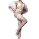 Introducing our breath taking white sheer hold-ups from the Wedding Touch Collection, designed to elevate your bridal look with a touch of sheer elegance. These hold-ups feature a beautiful and intricate thigh detail that exudes sophistication and allure. Crafted with meticulous attention to detail, they are made from luxurious fabric that offers a sensual and flattering fit. The captivating thigh detail adds a touch of romance and charm to your ensemble, making you feel like a true vision of beauty. With their secure hold and delicate design, these white hold-ups from the Wedding Touch Collection are the perfect choice for brides seeking a combination of sheer elegance and sensual femininity, ensuring you make a lasting impression on your special day.