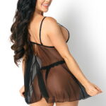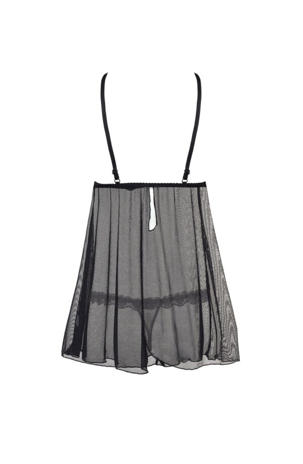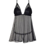 Indulge in the allure of this very exclusive yet sensual and provocative black chemise crafted from tulle and lace. The chemise features decorative, shaped cups and adjustable shoulder straps for a perfect fit. Complete with tulle thongs adorned with lace, this set exudes sophistication and allure. Presented in elegant packaging featuring a picture showcasing the product, it bears the hologram of the Beauty Night Fashion logo for authenticity. Also included is a convenient bag-pouch for storage or laundry.