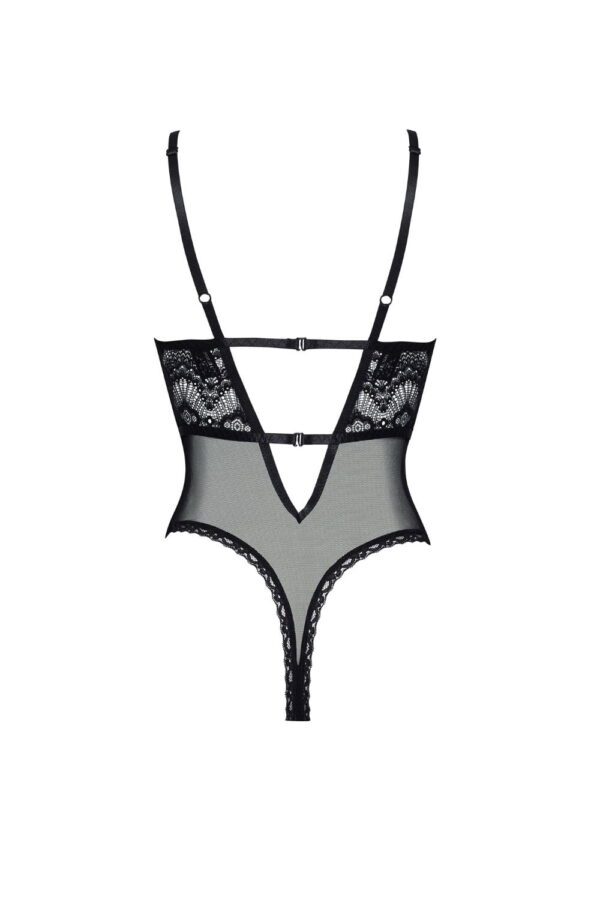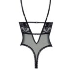 The Peyton Teddy is an elegant and sensual bodysuit that enhances femininity and confidence. Crafted from delicate, sheer lace and mesh, it embodies luxury and sex appeal. The deep cutouts and thoughtful details make every woman feel special. Key Features: High-quality lace and mesh gently hug the body for comfort & a perfect look. Deep V-shaped neckline showcases the bust. Two front boning strips provide additional support. Classic black adds elegance and sensuality, suitable for any occasion. Adjustable straps and elastic bands at the back ensure a perfect fit. Lace-adorned front and mesh back with a deep cut-out highlight the back. Comes in an elegant box with a product photo making it a perfect gift. Includes a pouch for storing or washing, ensuring long-lasting quality. Choose the Peyton Teddy to add luxury and sensuality to your lingerie collection, perfect for special occasions or romantic evenings.