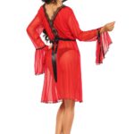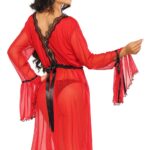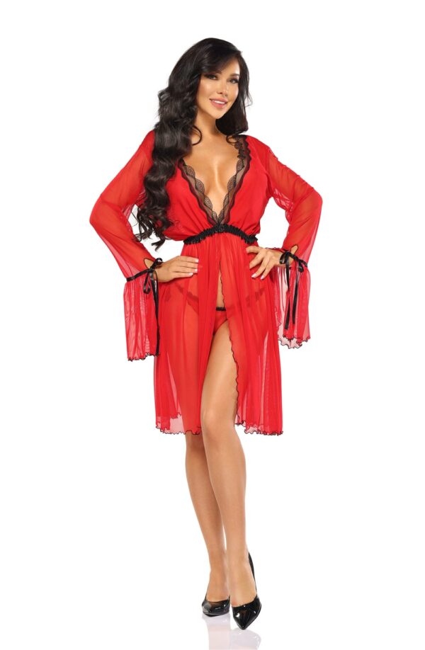 Unleash your inner goddess with the Valentina peignoir, a luxurious and sensual lace robe perfect for women who want to feel both alluring and elegant. Ideal for romantic evenings and special occasions, this stunning sheer peignoir combines delicate materials with sophisticated details, making it a must-have in your luxury lingerie collection. Key features: The flowing, sheer fabric of this sexy robe drapes beautifully over the body, creating a seductive yet elegant silhouette. The deep V-neckline and back are adorned with delicate black lace, adding a touch of sophistication and charm to this lace robe for women. Made from lightweight, breathable mesh, this lace lingerie robe feels incredibly soft on the skin, offering maximum comfort. Long, flowing bell sleeves with frilled edges and ribbon accents add a whimsical, romantic touch to the overall design. Includes matching thong panties, perfectly complementing the robe for a coordinated look. The Valentina peignoir comes in elegant packaging with a product photo, making it an ideal gift for a loved one or a luxurious treat for yourself. Don’t miss the chance to elevate your sexy lingerie collection with the Valentina lace peignoir. Feel like a true queen every time you wear it, whether for a romantic night in or a special occasion!
