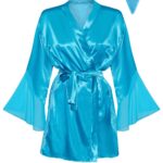 The Marlene Robe in turquoise epitomises luxury and elegance, perfect for any woman who cherishes comfort and style. Crafted from the finest satin, this robe ensures both supreme comfort and exceptional chic. Key Features: Colour: Turquoise, exuding freshness and energy. Material: Luxurious satin, soft and gentle on the skin. Sleeves: Wide, flared sleeves that add a touch of elegance. Trim: Lace inserts on the sides, infusing romantic charm. Belt: Satin belt to tie, accentuating the waist. Set: Includes a matching thong. Packaging: Presented in an elegant box with a photo, ideal for gifting. The Marlene Peignoir Turquoise Robe is perfect for women who want to feel special every day or on special occasions. It also makes an exquisite gift.