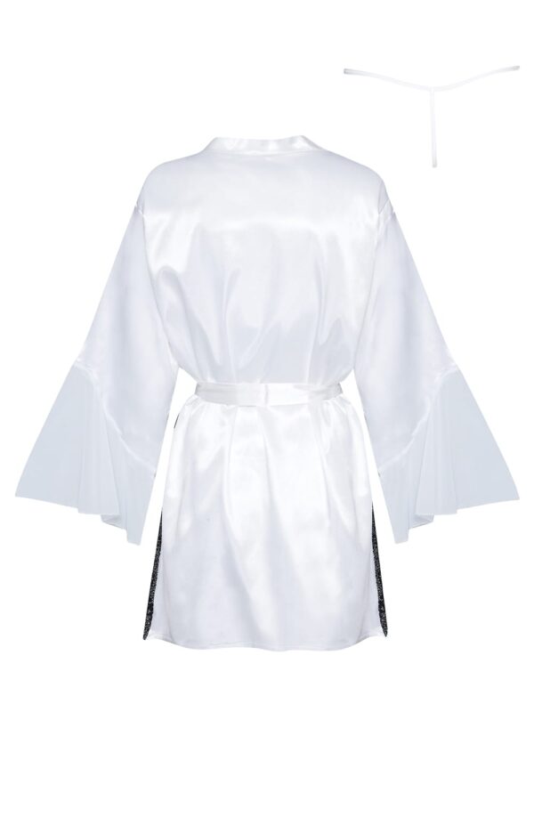 Step into a world of luxury with the Sara Peignoir White Robe—your new go-to for elegance and comfort at home! This stunning robe is designed for women who want to feel fabulous and sophisticated, whether they’re enjoying a cozy night in or hosting a special occasion. Main Features: Luxurious satin fabric: Wrap yourself in the soft, delicate satin that caresses your skin, ensuring you feel as good as you look. Sensual design: The classic white colour, complemented by eye-catching black lace accents and chic mesh inserts, creates a look that’s both timeless and unique. Adjustable satin belt: Flaunt your figure with the satin belt that cinches at the waist, allowing for a customizable fit that flatters every silhouette. Versatile cut: Perfect for romantic evenings, lounging on the couch, or entertaining guests—this robe does it all! Matching panties included: Complete your ensemble with the coordinating thongs, making sure you feel fabulous from head to toe. Flared sleeves: The wide, flared mesh sleeves add a playful touch of elegance that elevates your look and keeps you feeling light and breezy. Perfect finishes: Each detail is crafted with love, ensuring durability and a style that stands out. Gift-ready packaging: Comes beautifully packaged with a stunning product photo, making it an ideal gift for birthdays, anniversaries, or just because! Elevate your loungewear game with the Sara Peignoir White Robe. It’s the perfect blend of luxury and comfort, making every moment at home feel special. Treat yourself or surprise a loved one with this must-have addition to any wardrobe—because you deserve to feel extraordinary every day!