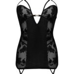 Get ready to wow with the stunning “Xiomara” chemise – a luxurious combination of delicate lace and velvety perfection that hugs your curves just right! With underwired cups giving your bust that extra wow factor and adjustable straps for the perfect fit, you’ll feel as good as you look. The back? Oh, it’s all about that elegant lace-up design that’s sure to leave a lasting impression. Add the garter straps, and you’ve got a look that’s effortlessly sensual from every angle. Plus, the matching velvet string panties? Total knockout! Packaged in a sleek, elegant box with a product picture, this set is ready to bring the romance for those extra special nights! (stockings not included but available separately)