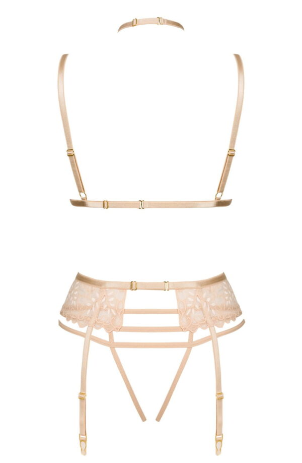 Discover the enchanting Noemi Lingerie Set, featuring a bra, open thong, and garter belt. Crafted from delicate lace, this set accentuates your natural beauty and exudes femininity and sensuality. Key Features: High-Quality Lace: Exquisite and delicate, adding a luxurious touch. Nude Colour: Elegantly highlights natural beauty. Transparent Materials: Lightly envelop the body Adjustable Straps and Fastenings: Ensure an ideal fit. Intricate Lace Detailing: Elegantly enhances the bra and thong Comfortable Fit: Designed for all-day and all-night wear. Elegance and Sophistication: Boosts confidence Ideal Gift: Packaged in an elegant box with product photos, perfect for gifting. The Noemi Set is a perfect gift, combining elegance and sensuality to make every woman feel special and appreciated.