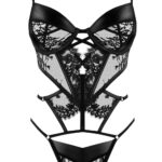 Introducing the stunning and erotic teddy from the Leonela series in black. This exquisite piece combines delicate lace with wet-look material to ignite desire and captivate attention. Ideal for the discerning customer, this teddy is a perfect blend of elegance and allure. Please note the stockings are not included. Elegantly packaged with a photo showcasing the product, this set is as perfect for gifting as it is for personal indulgence.