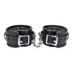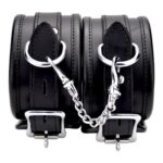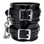 Set the scene and establish the tone of exquisite pleasure and pain by restraining your sub with these exclusively high quality, durable leather ankle cuffs. Soft and padded for comfort and safety but tight and sturdy for advanced and lengthy bondage play, these cuffs will leave you truly Bound. Comes with a detachable double trigger hook chain connecting one set of D-rings on each cuff, further restricting the sub’s movement if desired. You can also use the chain and a total of 4 D-rings to attach other bondage items if you want to introduce further variety into your BDSM session. The buckle system is lockable with a padlock through the prong so you can have complete control over the extent of the limitations you set. Treat your sub to these high quality cuffs, they’ll beg to be tied up just to feel the luxurious leather tight around their ankles, smell the genuine, high quality leather and enjoy the inescapability of these premium restraints. Add a professional look and feel to your BDSM scenes with our exquisite bondage range, BOUND. Check out and complete your BOUND collection with our exclusive nubuck leather wrist cuffs, collar, flogger, paddle, solid ball gag, 4-way hogtie, leash, blindfold and riding crop. BOUND Padlock and Double Trigger Clip also available to use with this range.