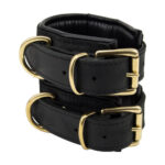- Luxurious black leather wrist cuffs