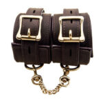 Set the scene and establish the tone of exquisite pleasure and pain by restraining your sub with these exclusively high quality, durable nubuck leather ankle cuffs. Soft and padded for comfort and safety but tight and sturdy for advanced and lengthy bondage play, these cuffs will leave you truly Bound. Comes with a detachable double trigger hook chain connecting one set of D-rings on each cuff, further restricting the sub’s movement if desired. You can also use the chain and a total of 4 D-rings to attach other bondage items if you want to introduce further variety into your BDSM session. The buckle system is lockable with a padlock through the prong so you can have complete control over the extent of the limitations you set. Treat your sub to these high quality cuffs, they’ll beg to be tied up just to feel the luxurious nubuck leather tight around their ankles, smell the genuine, high quality leather and enjoy the inescapability of these premium restraints. Add a professional look and feel to your BDSM scenes with our exquisite bondage range, BOUND. Check out and complete your BOUND collection with our exclusive nubuck leather wrist cuffs, collar, flogger, padded paddle, solid ball gag, 4-way hogtie, leash, blindfold and riding crop. BOUND Padlock and Double Trigger Clip also available to use with this range.
