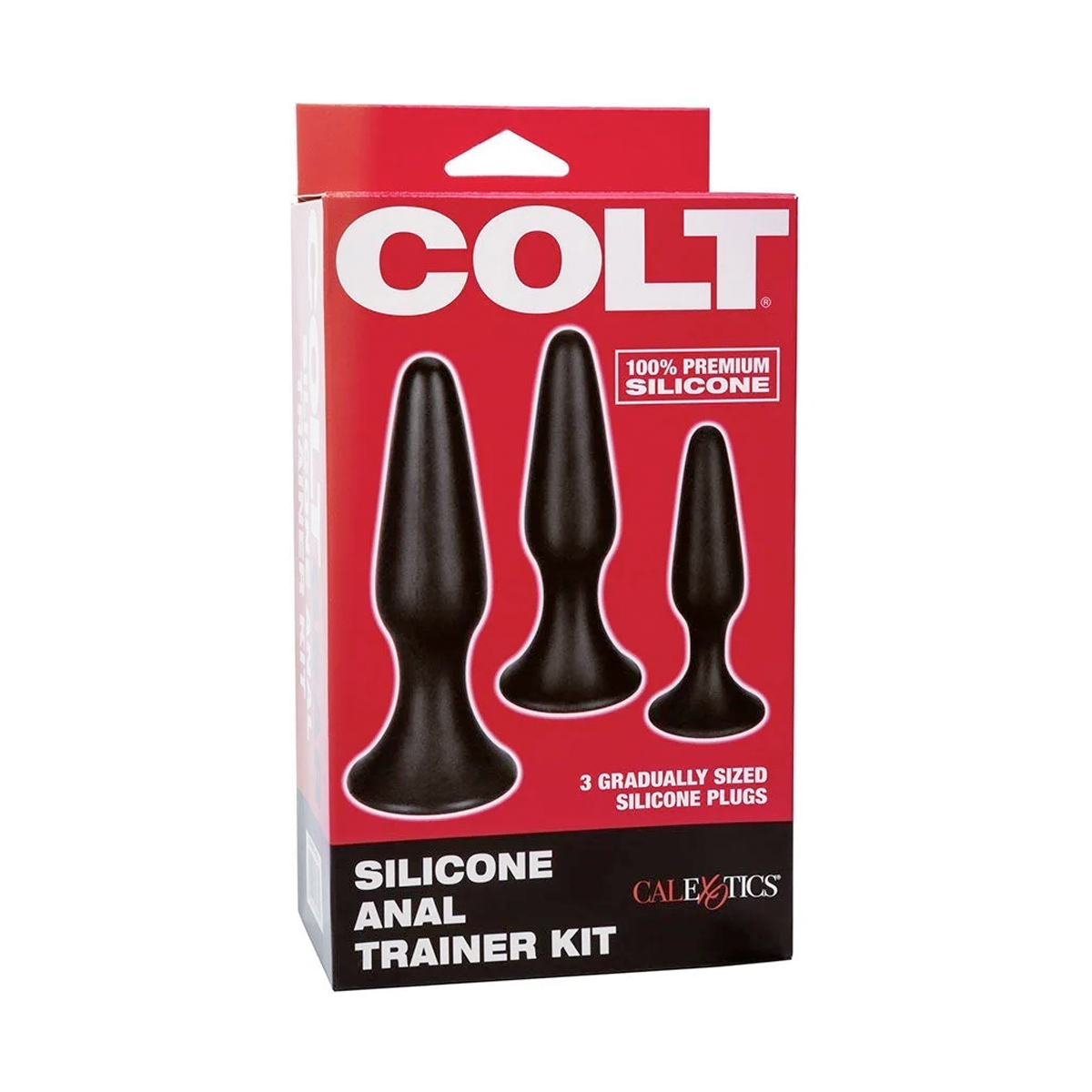 New to TOYS? The Anal Trainer Kit comes with 3 different size butt plugs that will help you work your way up to some of the BIGGER COLT Gear plugs and vibrating probes. This is the kit to get you started and remains one of our best sellers!! These plugs are firm yet pliable and are made of a slick Phthalate-Free PVC in a shiny sexy black finish!