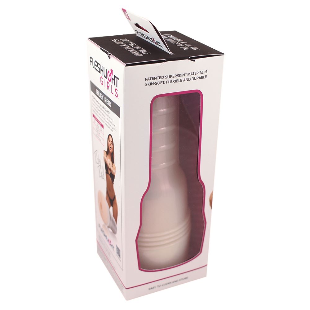 “Fleshlight Girl Riley Reid is the Fleshlight male masturbator which replicates Riley Reid’s vagina. Available in realistic flesh tone color with her unique and exclusive Utopia texture. Each custom-molded Fleshlight Girls masturbation sleeve is an exact mold of each star’s most intimate parts. Each unit includes the patented Fleshlight Masturbation Sleeve and unique Pearlescent Case.