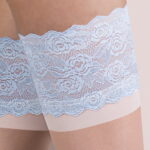 Introducing the elegant Katherine from the new Gabriella collection ‘In Love’. A feminine design embracing decorative sexy lace with a subtle pattern perfect to complement special occasions and the most important things in life. This design comes in Natural/White/Blue which predominantly the legs are covered in nude (natural) colour the strip is white and the lace is blue. These thin delicate self-supporting hold ups contain two individual silicone strips inside the lace band; the silicone looks great on the naked skin and it prevents the slipping and wrinkling of the hold ups whilst worn. The use of elastane with polyamide silk ensures not only the durability of the hold ups and confidence in every step but also the breathability and comfort of use even on warm days. And to give further support the toes are invisibly re-enforced. The finishing touch is the packaging; luxurious feel and touch with a representation of the product on the front branded with blue metallic ‘in love’ font. A further image is located on the back to show the back view when the hold ups are worn.