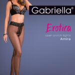 Introducing a very sexy pair of tights Amira from Gabriella’s Erotica series which is dedicated to women who value the combination of classic and a bit of piquancy. Thin straight material adorns the entire length of the leg and is highlighted at the top by a wide fancy lace belt with silicone strips inside. This keeps the tights in position and gently envelops the body; emphasising its greatest advantages and will make every woman feel at ease. Thanks to the classic texture of the model Amira will be a perfect compliment to many styles and intimate situations. Let your imagination run wild and ignite your sense from the high waist and open crotch area. Silky tights and invisibly reinforced at the toes. The finishing touch is the packaging; Amira comes packaged in a lovely pink branded box with matching tissue paper inside. Also with an outer sleeve showcasing the product on the front branded with a metallic pink ‘Erotica’ on the front a luxurious touch and feel.