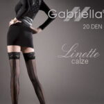 Linette is a fine delicate transparent lycra 20 Denier hold-up with back centre seam. There is a 9cm wide lace at the top with double silicone strip.
