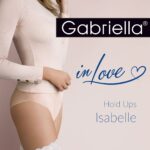 Introducing the treasured Isabelle from the new Gabriella collection ‘In Love’. A delightful design embracing decorative sexy lace with a subtle pattern providing the perfect complement and style to special occasions. This design comes in natural / blue which predominantly the legs are covered in nude (natural) colour and the lace is light blue. I guess you could say the blue lace prevents the need for a garter? These thin delicate self-supporting hold ups contain two individual silicone strips inside the lace band; the silicone looks great on the naked skin and it prevents the slipping and wrinkling of the hold ups whilst worn. The use of elastane with polyamide silk ensures not only the durability of the hold ups and confidence in every step but also the breathability and comfort of use even on warm days. And to give further support the toes are invisibly re-enforced. The finishing touch is the packaging; luxurious feel and touch with a representation of the product on the front branded with blue metallic ‘in love’ font. A further image is located on the back to show the back view when the hold ups are worn. These hold ups are also available in natural / champagne and are also found on the website. PLEASE NOTE: the image depicts the natural / champagne but the lace top is blue for these hold ups.