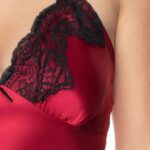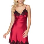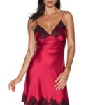 This pretty short style satin nightdress looks stunning in a lovely rich burgundy colour. Deep black lace decorates the cups and hem along with a pretty satin ribbon bow. The straps are adjustable for comfort and fit. This item arrives packaged in an Irall box making it ideal as a gift or treat. The Juniper collection comprises dressing gowns and matching nightdresses in burgundy or cream. Please see the ‘Related Products’ tab below for further details.