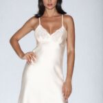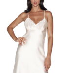 An extremely elegant nightdress made of the highest quality delicate satin. Decorated stretch lace cups with complementary decorative bow. The back of the nightdress is also finished with stretch lace Adjustable straps which are crossed at the back. Knee-length at a height of 164 cm. The product is packed in an elegant Irall box. There are several colours available in the Remi collection cream navy blue and hot red which are all available separately.