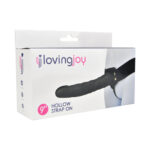 Become an everlasting lover and never come up short again with the Loving Joy 9-inch Hollow Strap On that will keep both you and your partner entertained for endless hours to come. Step up and step into the stretchy straps of the harness to wield this mighty phallus. With its deliciously veiny shaft, pronounced head, slight curvature and hollow inner tunnel, this sturdy black dildo is the ideal unisex toy. The pelvic cushioning at the base will ensure extended comfiness so you can keep at it as long as you want. Get 9 inches closer to heaven with the Loving Joy Hollow Strap On. Features: