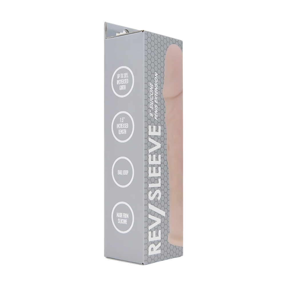 Enhance your intimate experiences with our Rev-Sleeves 8 Inch Realistic Silicone Penis Extension Sleeve. Crafted with premium, lifelike silicone, this sleeve offers a natural look and feel, seamlessly integrating into your moments of passion. Enjoy added length and girth while maintaining comfort and satisfaction. Elevate your pleasure and explore new dimensions of intimacy with confidence and ease.