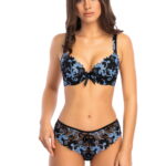 Florence Blue brief is black with rich blue embroidery. Item comes packaged in a lovely Roza box.