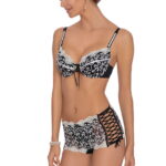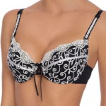 A stunning push-up bra with gorgeous lace and embroidery detailing. Two-section cup feature divided by soft and shiny ribbon. The cups have beautiful black mesh with delicate cream embroidery finished with cream scalloped lace at the top edge. An outstanding combination of colours which work incredibly well together. Inside the cups are removable pads. Between the cups is a thin long black bow and lovely lace up detailing which is a great stand out feature for this bra. Ginewra has thick adjustable bra straps which have luxurious cream ruffled ribbon lace with a small black satin bow at the top. Hook and eye feature at the back for adjustment. The wings of the bra are plain with soft and shiny fabric which is incredibly soft to touch finished at the edges with a complementary zig-zag stitch. Matching short is available to order separately on the website. Also available in white which is perfect for bridal wear. Ginewra arrives packaged in her own Roza box with elegant branded tissue paper inside.