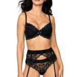A beautiful push up bra with a pretty bow in the centre. This push up bra has a two-sectional cup construction with matching lace at the top of the cup which carries through along the full under band and wings of the bra. The bottom half of the cup is decorated with lovely polka dots and subtle mesh overlay. Cups are underwired with adjustable shoulder straps. The cups feature removable pads and the bra can be fastened at the back with a hook and eye fastening. This item arrives packaged in a lovely Roza box making it ideal as a gift or special treat. The Lagerta collection comprises of a push up bra, soft cup bra, thong or brief all available in black or white. Each piece is sold separately to maximise the mix and match options. Please see the ‘Related Products’ tab below to see other combinations.