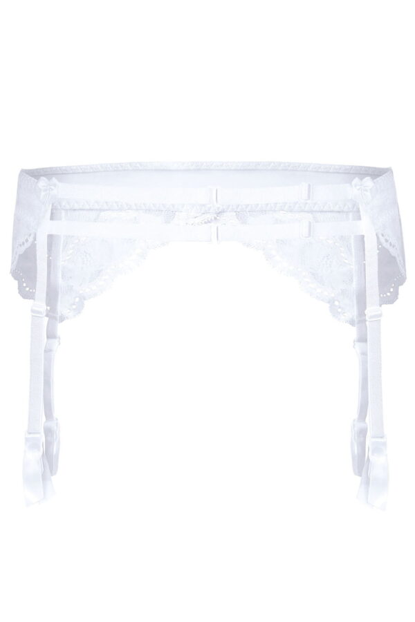 A beautiful suspender belt with a pretty bow in the centre. This suspender belt is decorated with a transparent mesh band with subtle polka dots and gorgeous lace has been used throughout the rest of the suspender belt. The suspender straps are adjustable and finished with ribboning at the ends and metal rubber suspender clasps. Two adjustable parallel elastic bands feature at the back to fasten the suspender belt. This item arrives packaged in a lovely Roza box making it ideal as a gift or special treat. The Lagerta collection comprises of a push up bra, soft cup bra, thong or brief all available in black or white. Each piece is sold separately to maximise the mix and match options. Please see the ‘Related Products’ tab below to see other combinations.