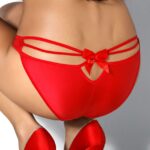 Mimi is an absolutely stunning design with extremely original novelty. This brief has a gracefully plain front and features a gorgeous open elasticated strap design with a beautifully eye-catching bow at the back. Mimi is available in three classic colours: Red Black and White. This item arrives packaged in her own lovely Roza box with branded tissue paper.