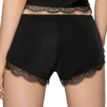 Beautiful soft stretch fabric decorated with oodles of sumptuous eyelash lace. These loose fit style shorts have a lovely satin ribbon bow and diamante detail at the front. Sija arrives packaged in her own Roza box making this item ideal as a gift or treat. The sija collection comprises shirt nightshirt briefs and shorts in a choice of black or white. Please see related products for further details.
