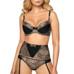 A gorgeous black bra that features a subtle glitter finish over the leopard print detailing that will make sure you shine. The cups are underwired and the shoulder straps are adjustable and removable. The cups feature removable pads and the bra can be fastened at the back with a hook and eye fastening. Zoje arrives packaged in a lovely Roza box making it ideal as a gift or special treat. The Zoje collection comprises of a push up bra, soft cup bra, thong or brief and suspender belt. Each piece is sold separately to maximise the mix and match options. Please see the ‘Related Products’ tab below to see other combinations.