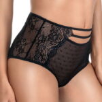 Zulaj is a romantic and enchanting design which includes a dreamy push-up bra soft cup bra brief and boxer brief which are all available to order separately on the website. A gorgeous boxer brief which is decorated with exceptionally traditional black lace complemented with shiny silver thread that dazzles in the light. The front of the boxer brief has a panel in the middle of plain semi-transparent tulle with a polka dot design imprinted. The sides of the brief has floral lace with dazzling thread sewn on top which scallops its way onto the front and the back. At the back is extremely soft plain lycra material which is edged with elasticated straps. On the front is an elasticated three strap design which sits on the stomach and at the back is a small open oval. Inside the brief is a cotton gusset and on the outside of the gusset is a lining of tulle material which has an imprinted polka dot design. Zulaj arrives in her own Roza branded box with lovely tissue paper inside.