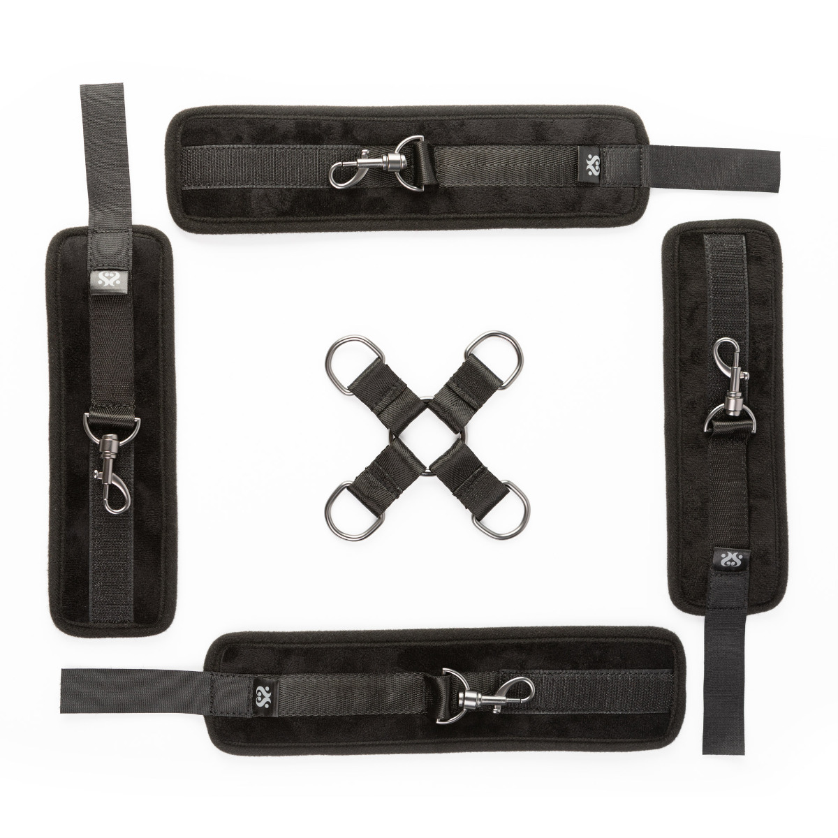 Unleash your wildest fantasies with the Sei Mio Hog Tied and Satisfied set featuring 4 luxurious velvet-soft detachable cuffs designed for ultimate versatility and comfort. Perfect for securing your partner in a variety of positions these cuffs provide a snug yet gentle hold that enhances the thrill of restraint play.