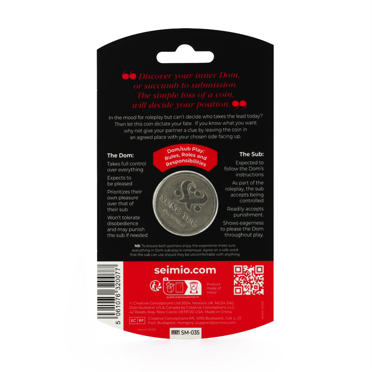 Sono Tuo or Sei Mio? The choice is in your hands – literally. Meaning “I’m yours” or “You’re mine” in Italian this playful coin lets users flip to decide who takes control adding an element of excitement and spontaneity to their experience.