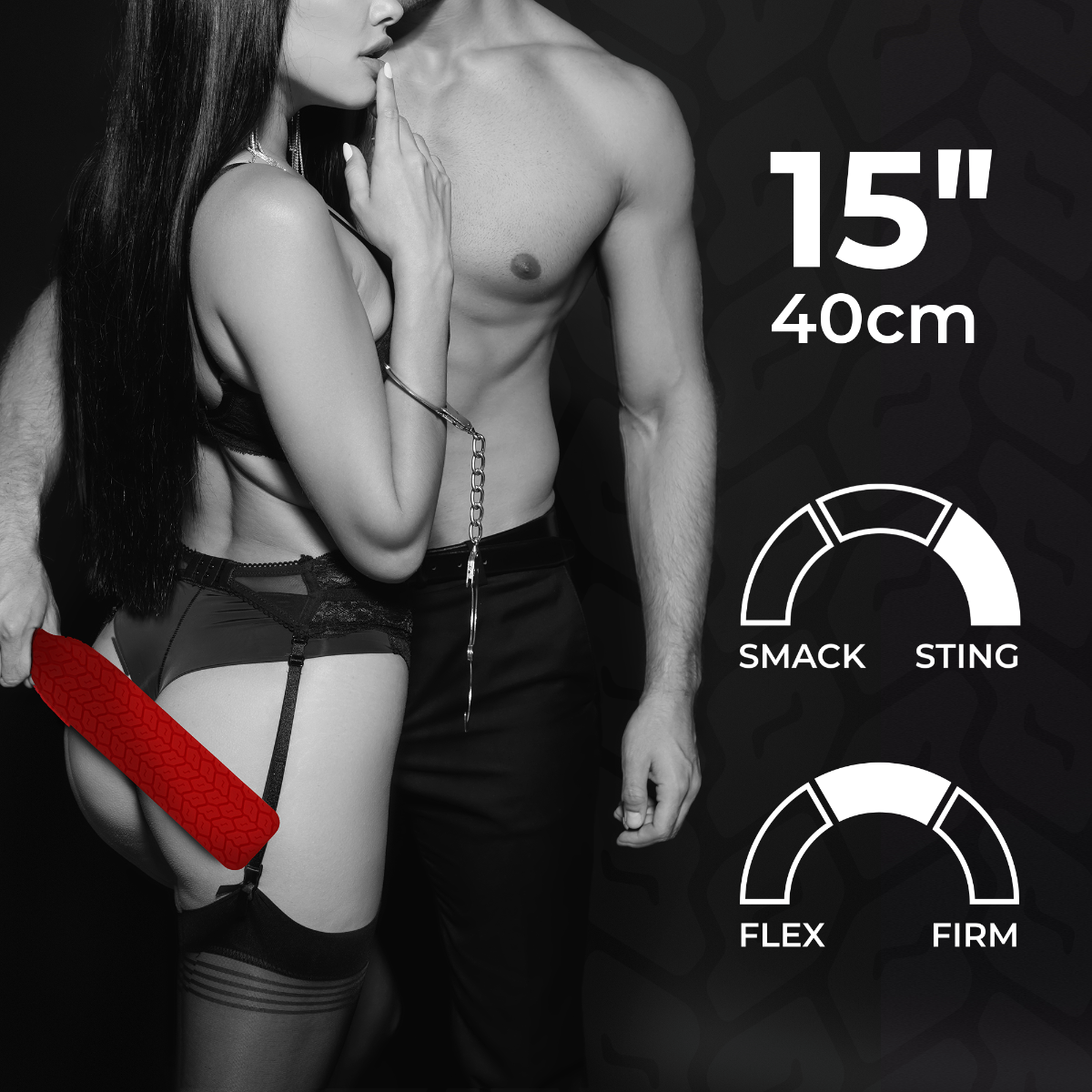 Perfect for experimentation or seasoned spanking enthusiasts this vegan waterproof paddle is double-sided so you can choose the sensation – sleek and smooth or rugged tyre-textured. Whether you leave an impression or not is down to you.
