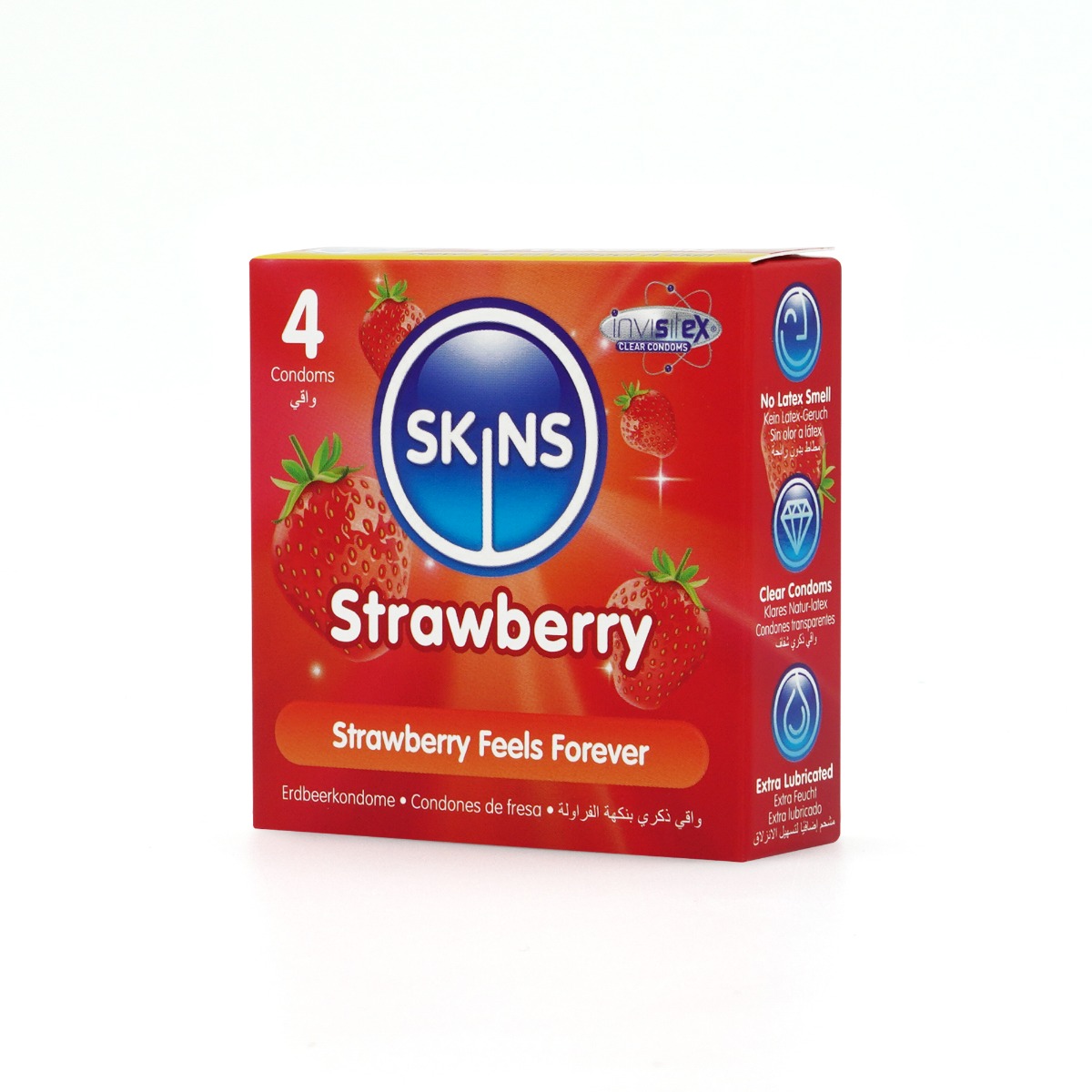 4 Individually wrapped Strawberry flavoured Condoms for ease of use.