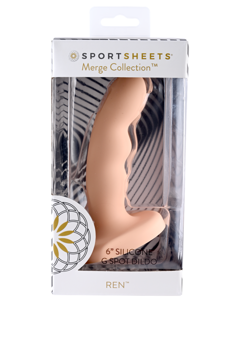 The Ren 6-inch solid silicone dildo from the Sportsheets Merge Collection is the creation of pleasure and versatility combined. With its flared base Ren can be used with O-Ring and underwear-style harnesses and externally or internally for partner and solo play. The ample curvature nonrealistic pleasure-bump shaft and tapered tip encourage G-Spot and P-Spot stimulation and the soft silicone creates an ultra-smooth sensation making it feel like a dream. Merge with pleasure.