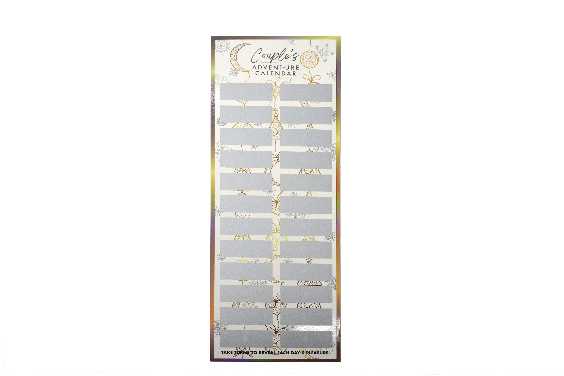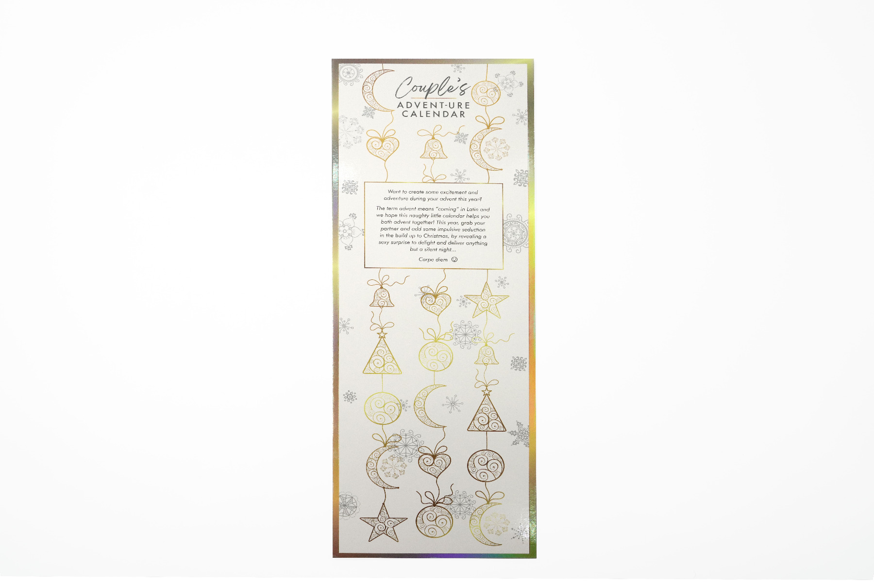 The word Advent means “coming” in Latin and we hope this naughty little calendar helps you both advent together! This year grab your partner and add some impulsive seduction in the build up to Christmas by revealing a sexy surprise to delight and deliver anything but a silent night!
