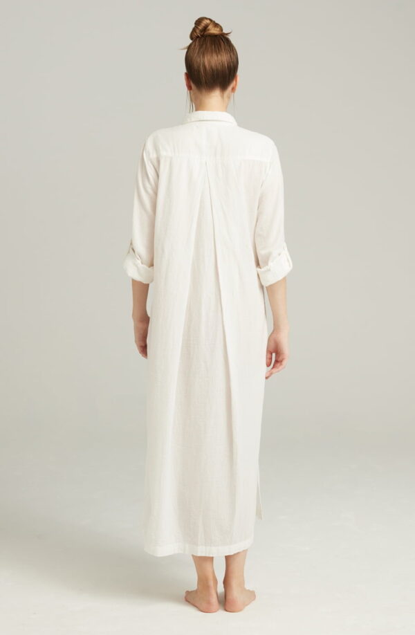Discover effortless elegance in bed and beyond with this 100% organic cotton maxi shirt with chic side slits. Adorned with signature Nudea detailing, mother-of-pearl buttons and thigh-high side slits, this luxe silhouette will have you feeling oh-so-chic as you drift off to sleep. Side slit embroidered detailing Mother-of-pearl buttons Adjustable sleeve tabs Relaxed fit 100% natural Nudea sleepwear is crafted with fully natural materials from the fabrics right down to the threads. Every inch of these garments is 100% OEKO-TEX certified Cotton – even the labels. Crafted with 100% natural materials