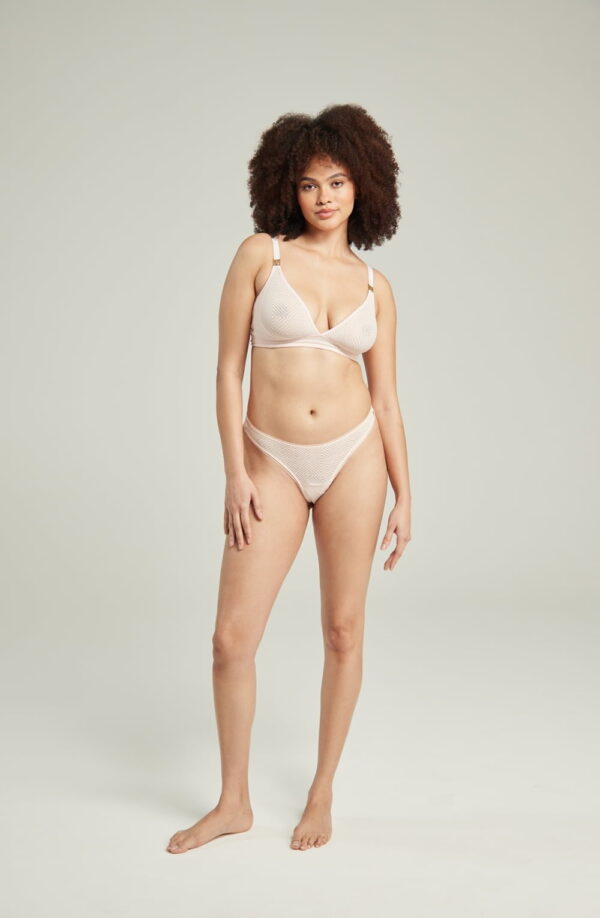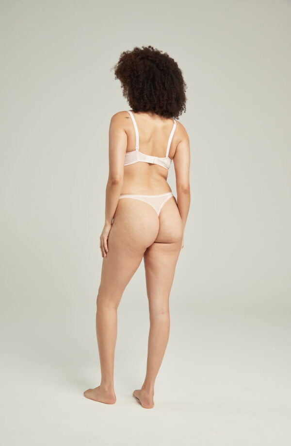 A lightweight sheer lace thong ideal for all-day comfort. Crafted in delicate recycled lace for a luxurious feeling in our new updated Art Deco inspired design. Made with recycled lace Art Deco-inspired design. Made by factory partners who promote ethical practices Nudea underwear is made with recycled or natural materials and has special design features to help prolong its lifespan.