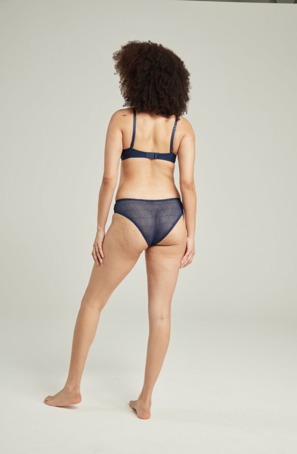 High-leg brief with a v-shape back provides a flattering, everyday silhouette. Crafted in our new and improved soft recycled lace and updated signature geometric pattern this high-leg brief offers all-day comfort and style in a flattering silhouette. Made from 78% recycled nylon mix, 22% recycled elastane mix Prolonged-wear design features Made by factory partners who promote ethical practices Nudea is made with recycled or natural materials and has special design features to help prolong its lifespan.