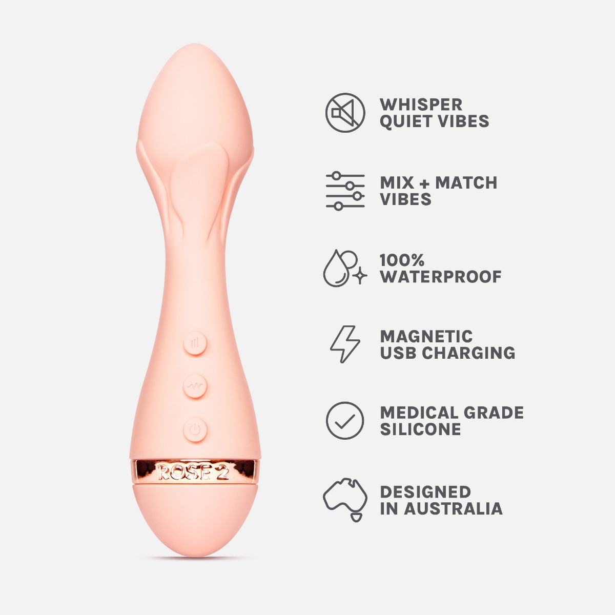The Rose 2 is a precision point bullet vibrator that’s hard not to fall in love with. Perfect for first self-love experiences or as an addition to your collection the Rose 2’s delicate petals offer an extra sensory experience to the toy’s 5 pleasure levels and 5 patterns to vibe with.