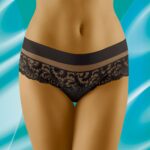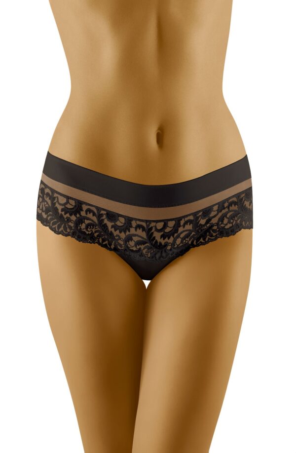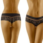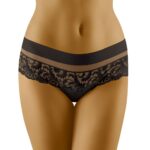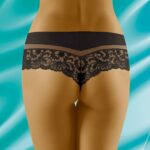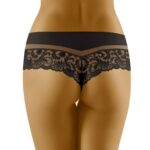 Cantata is a gorgeous design which has a combined shorts/thong style and is made from extremely soft to touch microfibre material. The top features an elasticated band of microfibre which is delicately edged with complementary stitching. Below is a transparent tulle insert which gives the design a little lightness. A charming lace panel is followed underneath this which at the back sits on the bottom giving a shorts look. However the crotch area is indeed in a thong style and provided is a cotton gusset. So if you’re into a mixture of shorts and thongs then this is for you! Immaculate stitching and incredibly soft feel. Available in black and white both colours can be ordered separately on the website. This item arrives packaged in a branded Wolbar box presenting an image of the product.