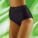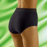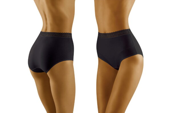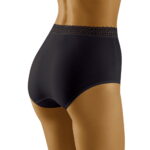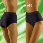 Eco-Go is a lovely pair of briefs made from high quality cotton. The top edge of the brief is decorated with lace trim and elasticated lace. Has delicately sewn seams and on the front this shows a small pattern at the sides. High-waisted and smooth. Features a cotton gusset which is sewn into the brief. Available in white beige and black and can all be ordered separately on the website. This item arrives packaged in a branded Wolbar box presenting an image of the product.