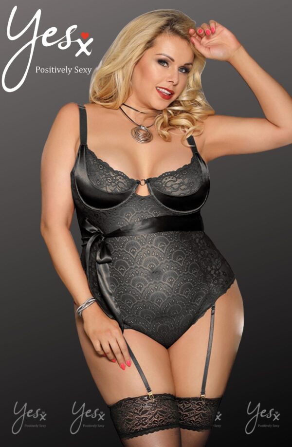 A stunning lace body with a delicate satin bow to tie at the waist to create wonderful hourglass shaping. This body features underwired cups with adjustable shoulder straps with hook and eye back fastening. The gusset has popper fastenings and the suspender straps are removable. PLEASE NOTE: Stockings are not included. Please see related products. This item arrives packaged in a YesX satin bag.