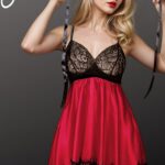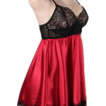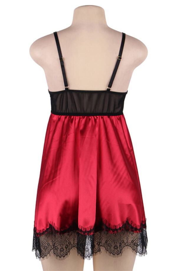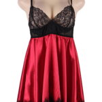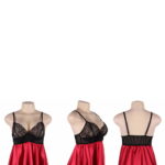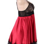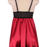 Beautiful flowing red satin babydoll with black lace cups. The straps are adjustable and the hem is edged with deep eyelash lace. Matching lace blindfold is included. This item arrives packaged in a Yesx satin bag.