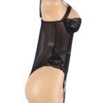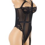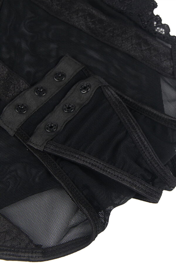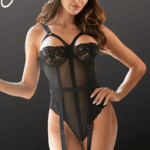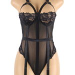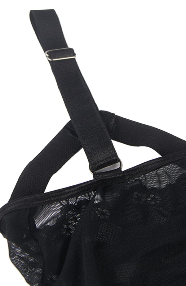 Stunning body suit with elegant lace detailing and adjustable suspender and leg straps. Adjustable popper fastening. Make this gorgeous bodysuit your perfect evening look by pairing it with either your favourite jeans or hold ups. This item arrives packaged in a YesX satin bag.