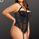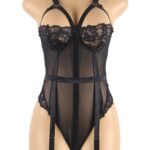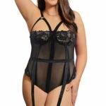 Stunning body suit with elegant lace detailing and adjustable suspender and leg straps. Adjustable popper fastening. Make this gorgeous bodysuit your perfect evening look by pairing it with either your favourite jeans or hold ups.