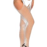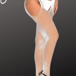 Elevate your elegance with these White Fishnet Crotchless Tights, featuring a delicate shimmering effect. The classic fishnet design exudes allure, while the subtle sparkle adds a touch of sophistication. Perfect for those who appreciate both boldness and refined style, these tights invite confidence and playfulness into your intimate moments (thong not included)