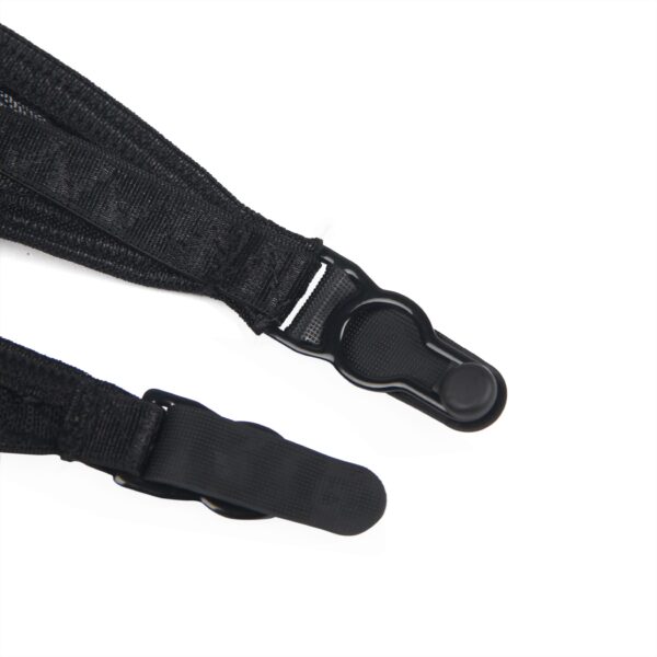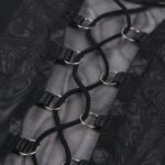 This alluring three-piece set is the perfect combination of elegance and seduction. Featuring a black mesh bra with delicate garter lace up details, it provides a flattering fit and an enticing look. The matching garter belt is designed with a lace-up back for a customisable, form-fitting feel, while the included thong adds to the set’s sensual appeal. To complete the set, the leg rings offer a unique and daring touch, making this set ideal for those seeking a bold, yet sophisticated look.
