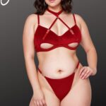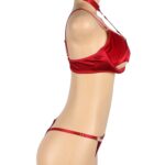 Turn up the heat with this luxurious red halter bra set, designed to celebrate every curve and crafted with a velvety feel that’s irresistible to the touch! Featuring a bold, hollow-cut bra with supportive underwire and a seductive halter neckline, this set brings confidence and style together effortlessly. The ultra-soft, velvety fabric feels amazing against the skin, while gold hardware adds a touch of glamour. Paired with a high-cut thong that accentuates your curves, this set is perfect for making a statement. Embrace your inner vixen and revel in the plush allure of this stunning lingerie set!